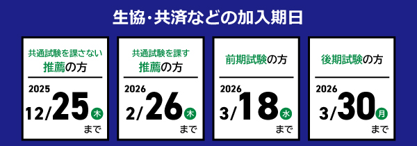 大学生活のリスクに対応した「大学生協の保障制度(共済・保険)」への加入を強くおすすめします。