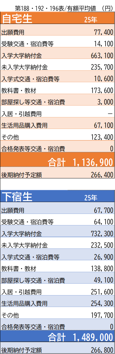 - 各費用項目と合計金額では平均値の算出方法が異なりますので、各費用を合計した金額と合計金額は同じにはなりません。