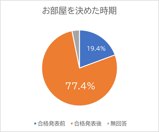 合格発表後にお部屋を決められる方が多いですが、約2割の方が入試時など合格前にお部屋を決めています。