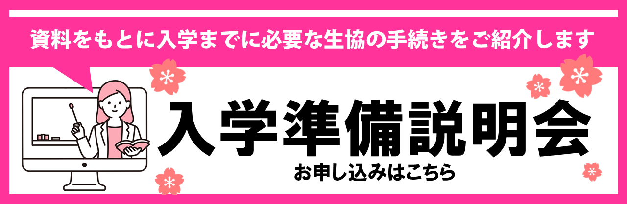 入学準備説明会の説明を聞いてから、生協加入・教材購入等のお手続きを進めてください。