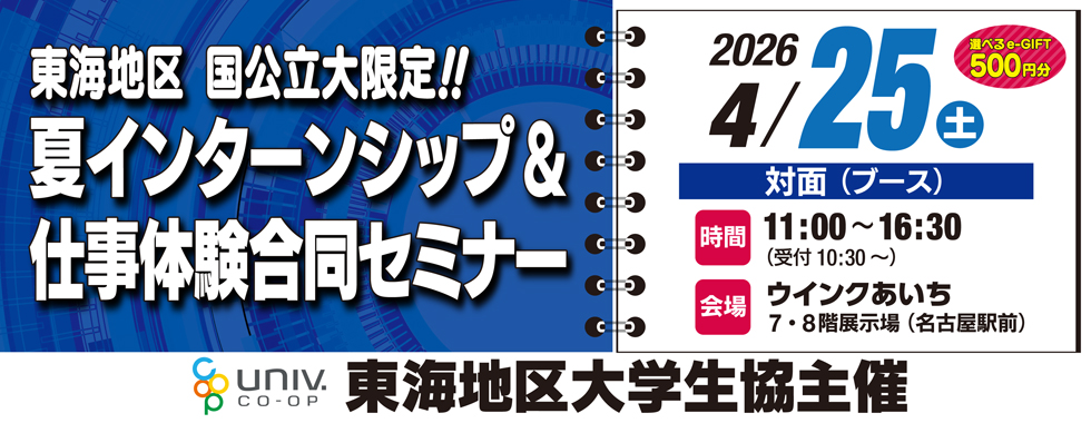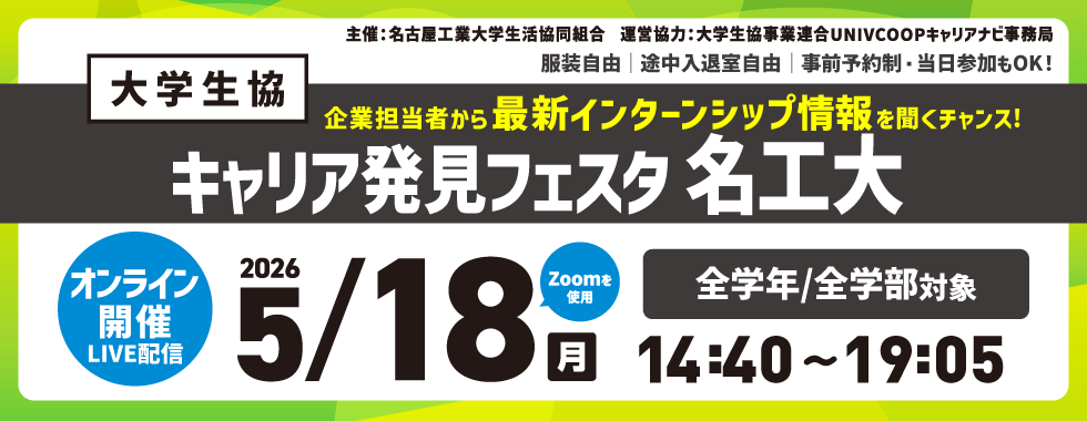 名工大生のための夏インターンシップ&仕事体験WEB合同セミナー