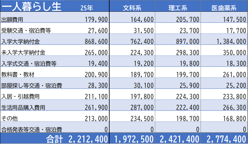 ※掲載の数値データは大の名城大の平均データ(金額の単位:円)