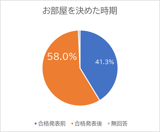 合格発表後にお部屋を決められる方が多いですが、4人に1人は入試時など合格前にお部屋を決めています。