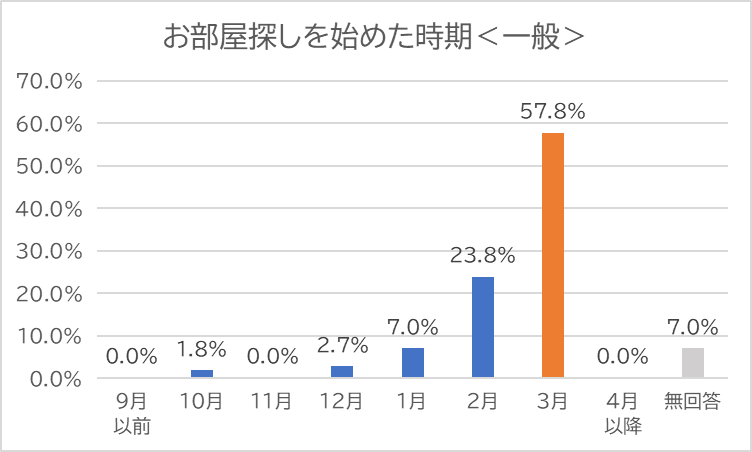 グラフ・コメントは『保護者に聞く2025年新入生調査』のアンケート結果より。名城大学生協の回答結果の平均値の掲載です。(有効回答数:587件)住まいはいつ頃から探せばいいの?