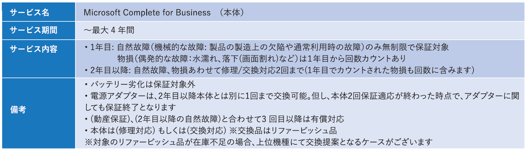 ※サービス内容詳細は本ページ上段掲載の表「Microsoft Complete for Business」を参照ください。