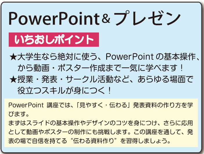 PowerPoint講座 Excel講座 |