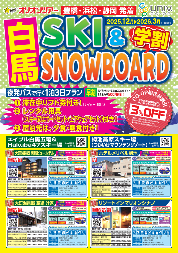 大学生協オリジナル 海外&国内旅行・ゼミ合宿・レンタカー大学生協でご相談・お申込みいただける国内旅行(宿泊)・ゼミ合宿・レンタカーをご紹介します。