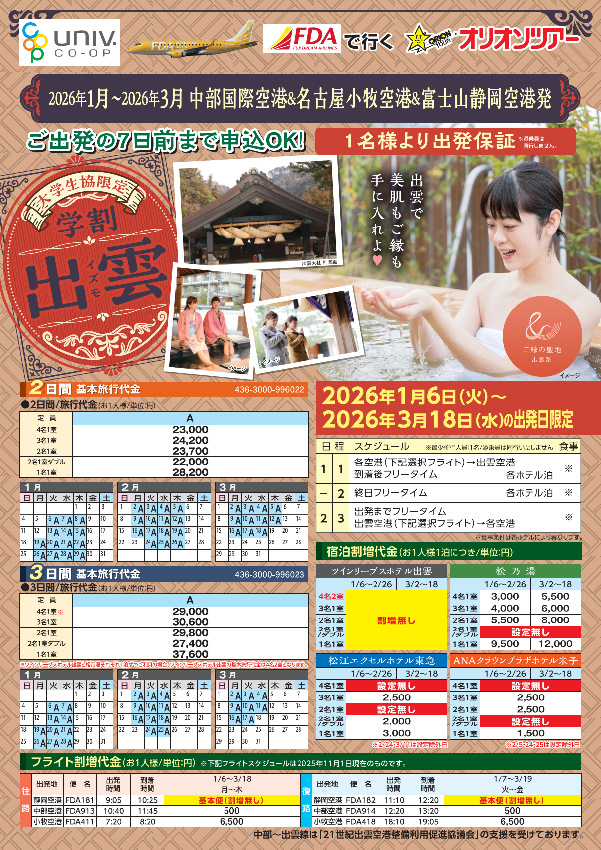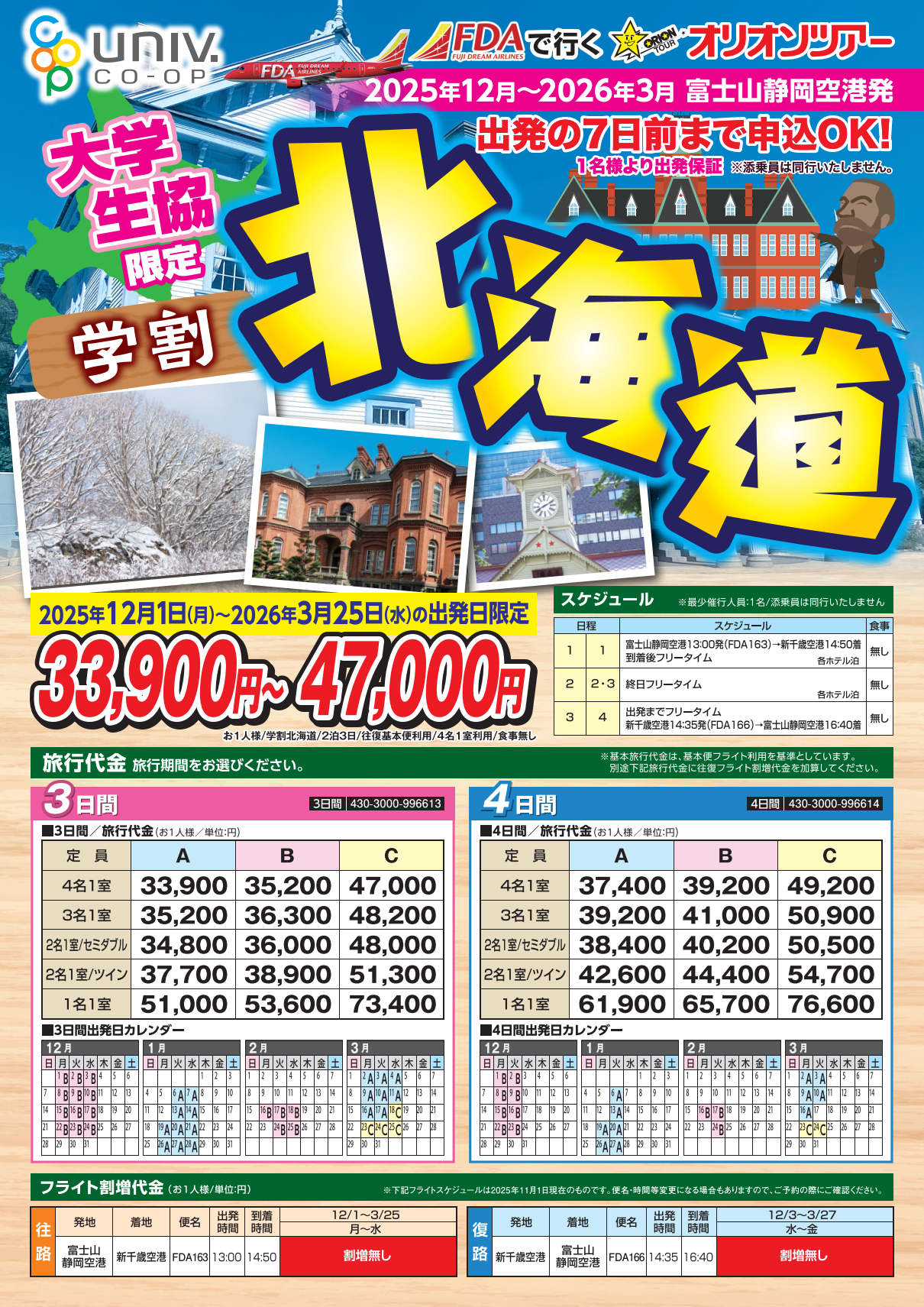 お問合せ・ご予約も大学生協旅行カウンターへ