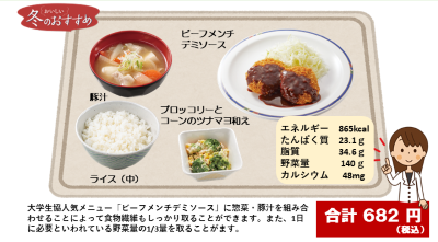 毎食毎日、バランスの良い食事を摂ることは難しいなと感じる人も多いかもしれませんが、まずは大学生協食堂で食事する日から、「バランスのよい食事」を実践してみましょう!