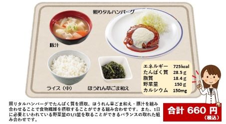 野菜が150gも取れる、人気の照りタルハンバーグの組み合わせ