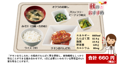 季節メニュー2品を組み合わせたバランスの良い組み合わせ