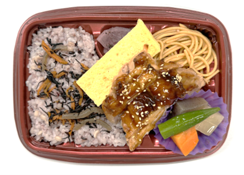 玉子焼きと鶏照り焼きでたんぱく質を多く摂取できるお弁当です。