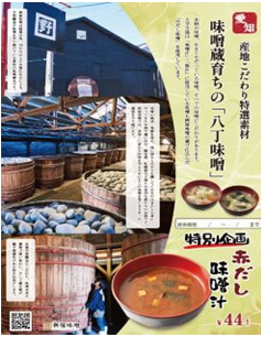 桝塚味噌の味噌を使用した「赤だし味噌汁」の提供が期間限定で提供されます!