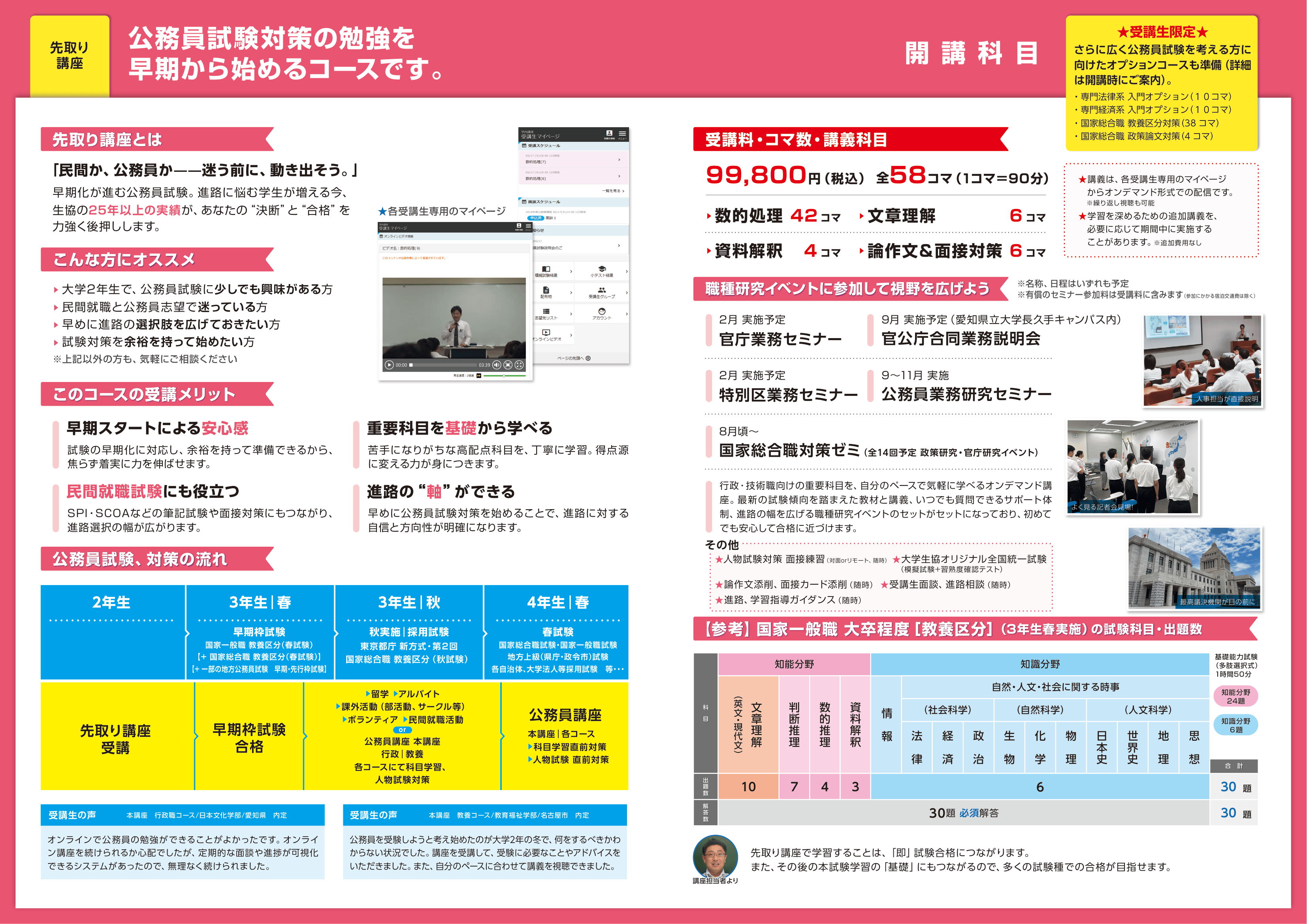 >>>2年生から始める公務員試験対策のポイントについて解説します。また、2年生向け先取り講座についての説明もあります。
