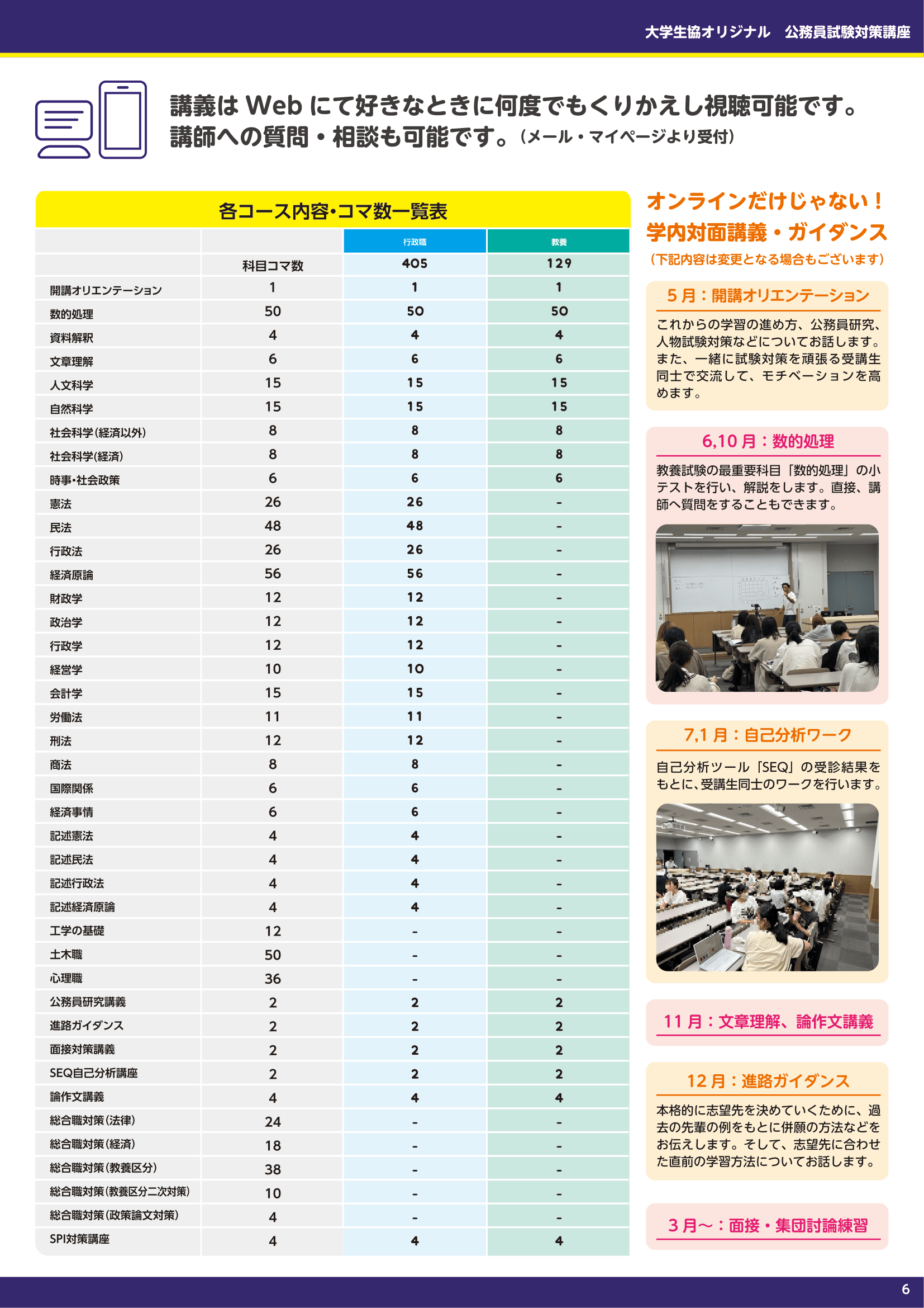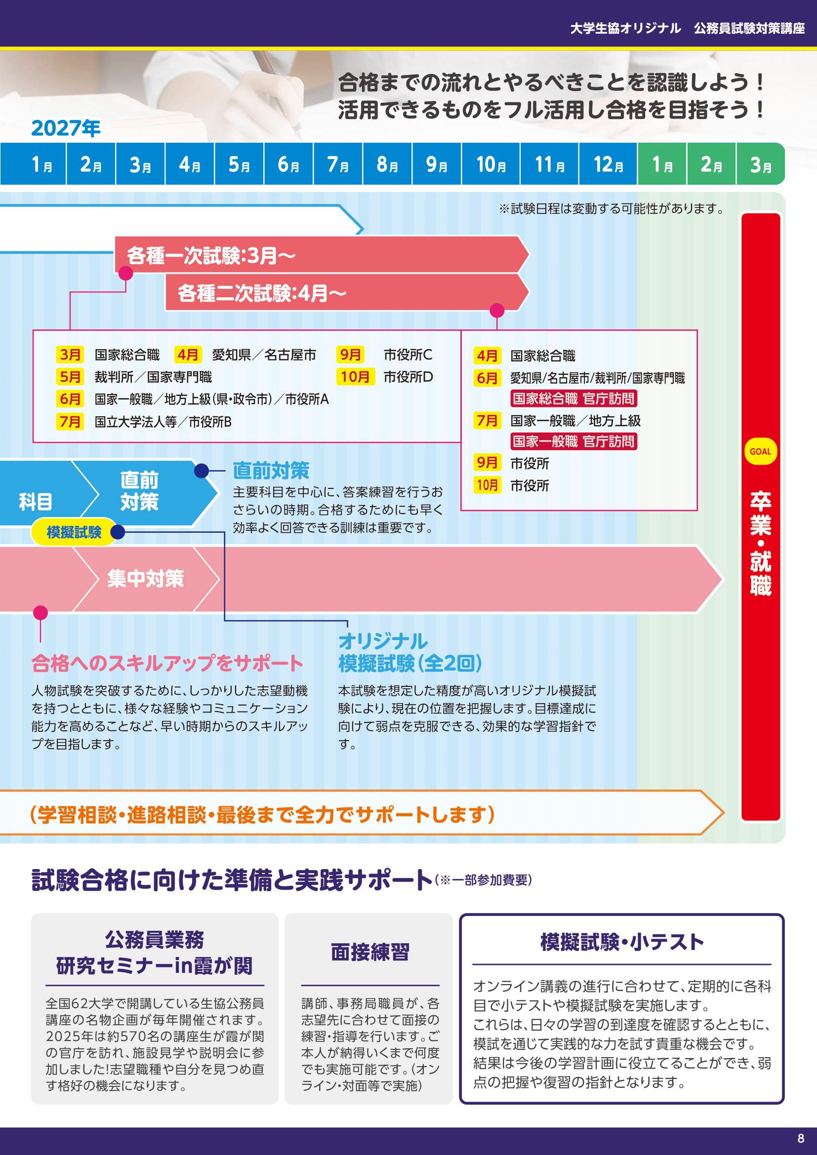 大学生協公務員講座では、「公務員試験対策」に関するガイダンスと「生協公務員講座」の説明会を実施します。