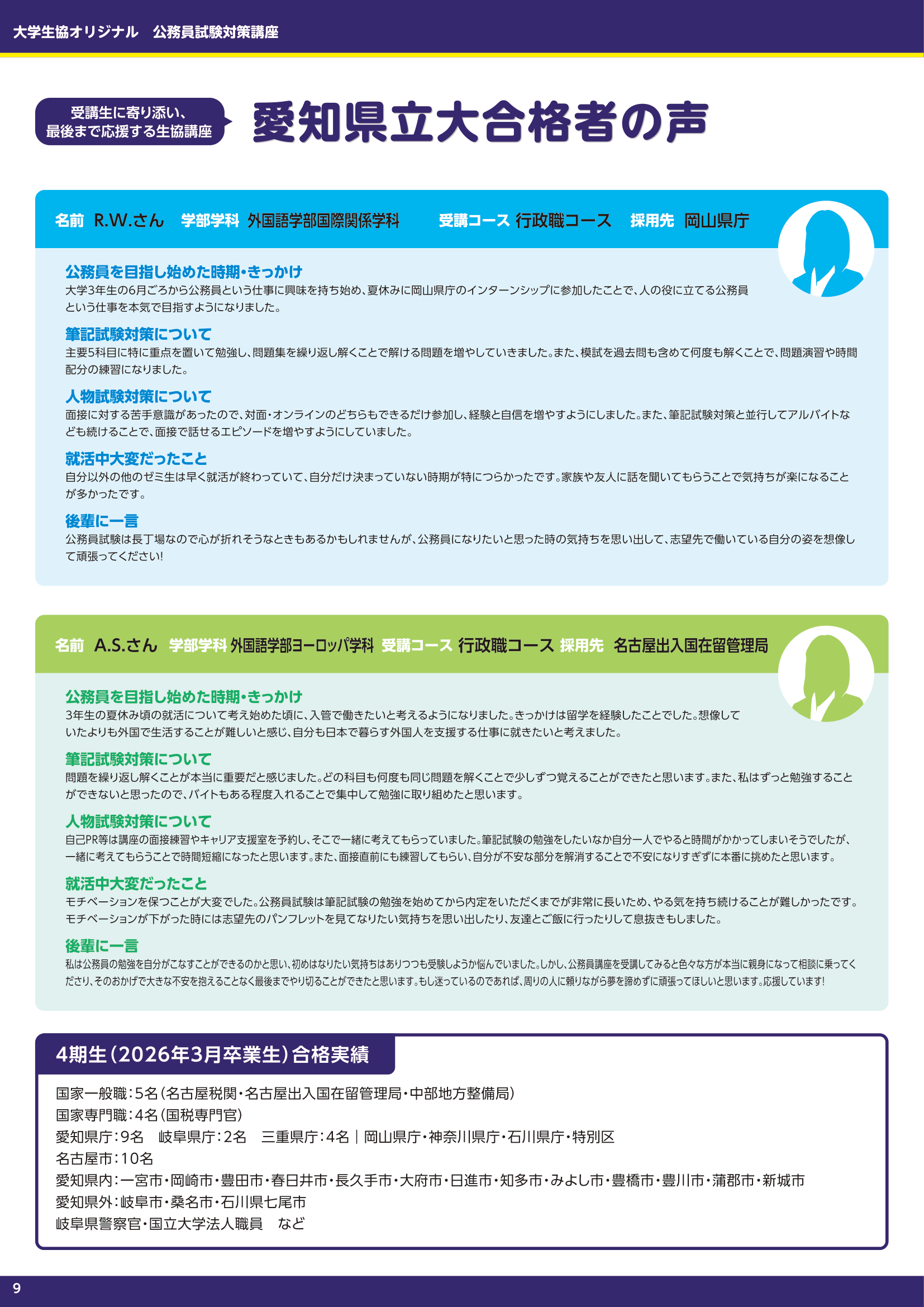 2026年3月愛知県立大学卒業予定受講生の合格実績・主な合格先〇国家一般職 5名