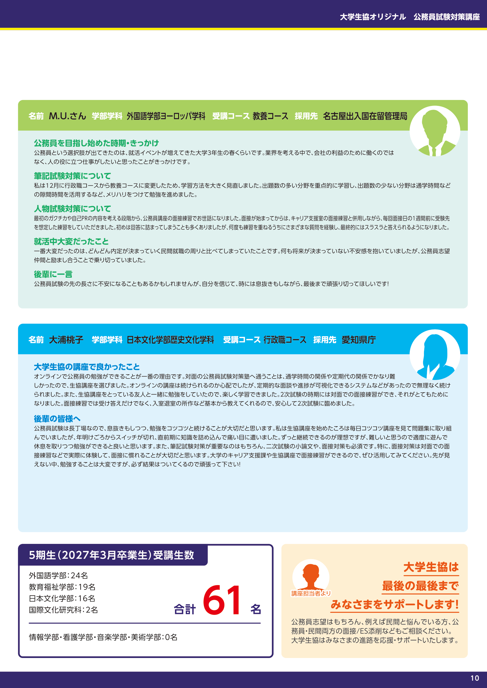 大学生協オリジナル公務員講座は、全国に受講生がいます。