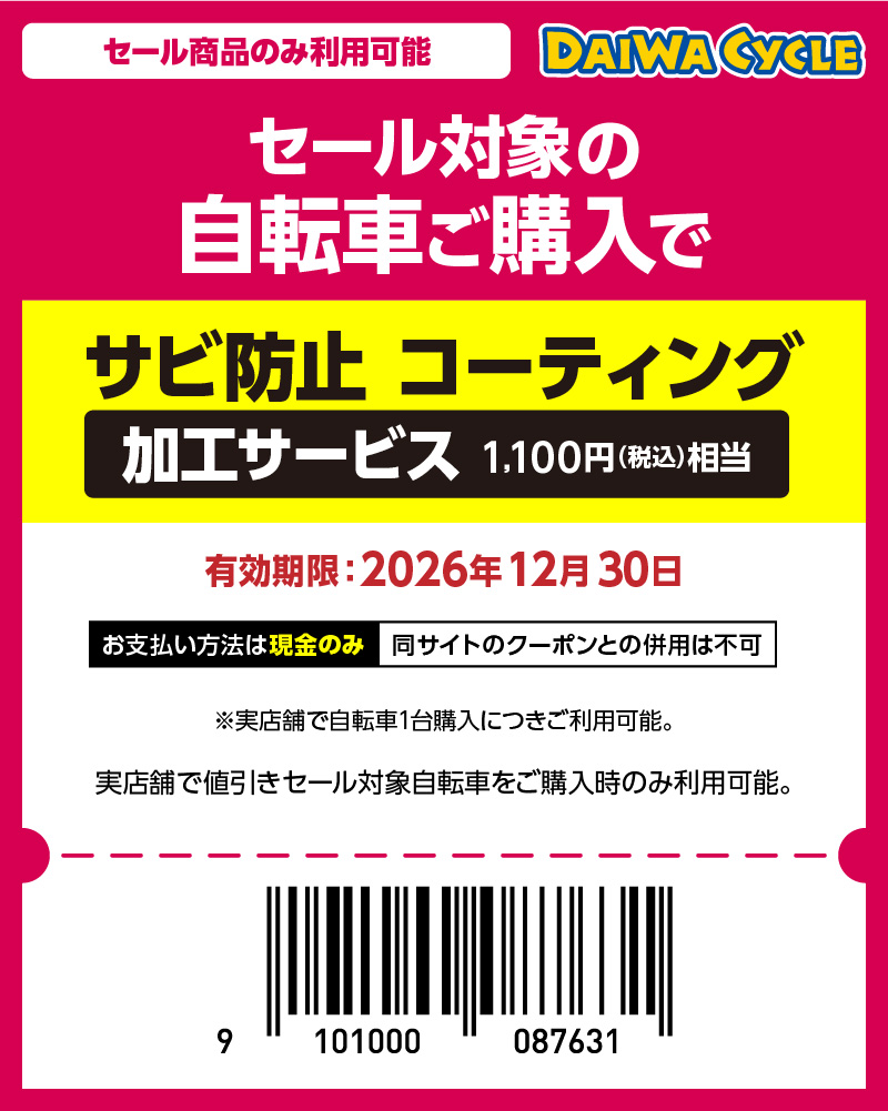 今なら特別な割引クーポンの利用が可能です。以下の画面をお会計時にご提示ください。