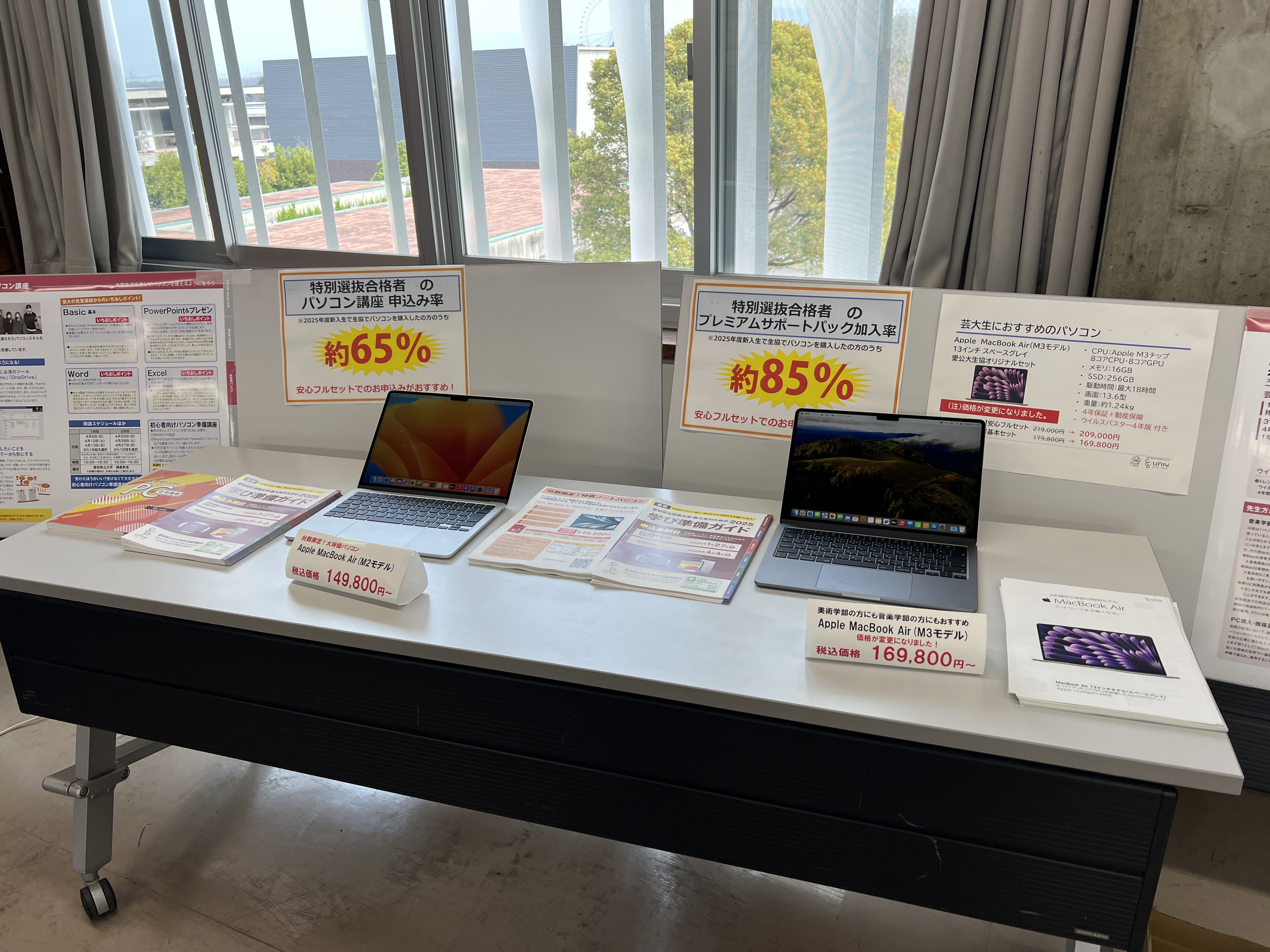 - 生協がご提案する各種教材ー学習用パソコン・大学生用電子辞書・英語学習教材などのご相談のほか、実機を展示しますのでお手に取ってごらんいただけます。