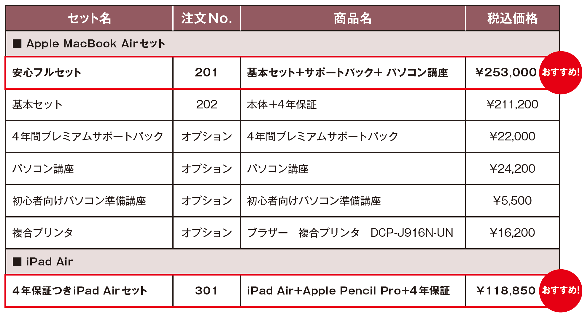 安心フルセットは、パソコンにプレミアムサポートパックとパソコン講座が付いたセットです。パソコンのトラブルから使い方まで、入学から卒業まで安心してパソコンをお使いいただけます。