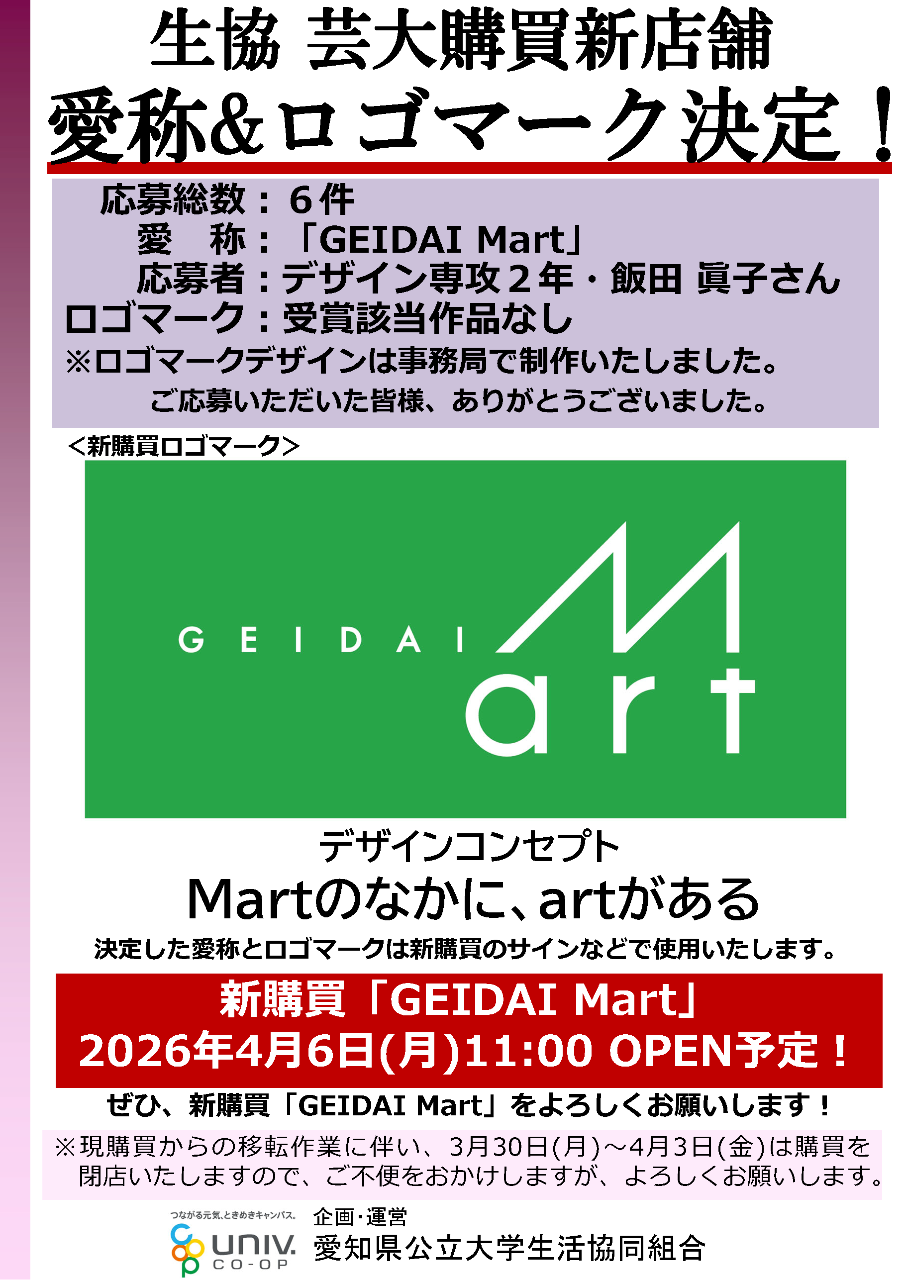 芸大新購買の愛称・ロゴマーク決定!
