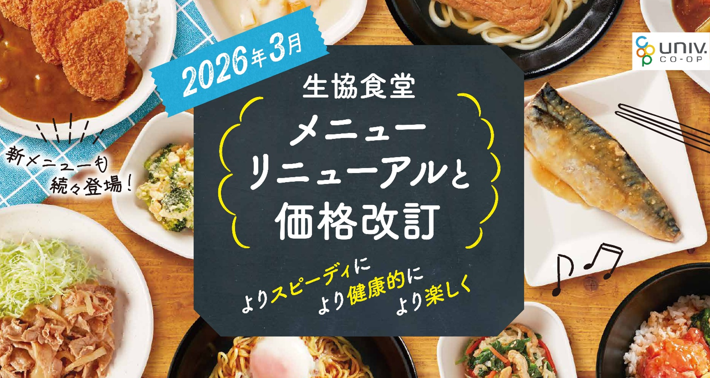 2026年3月より、食堂メニューの一斉リニューアルと一部価格改定を行います。