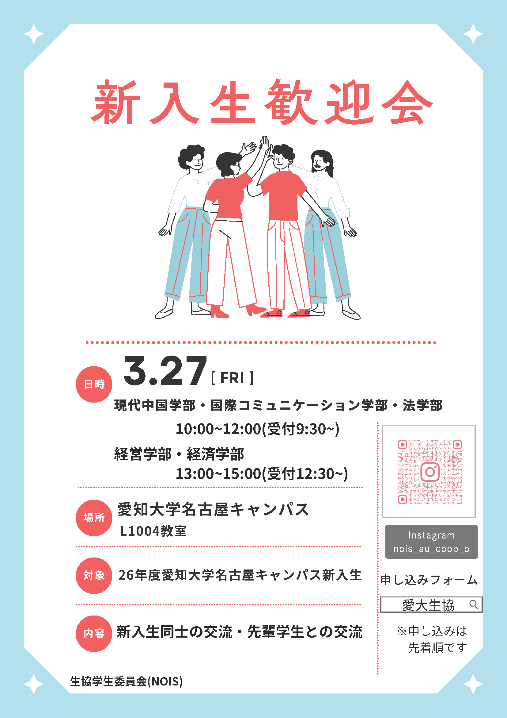 愛知大学生協への加入手続きがお済みの方はご参加いただけます
