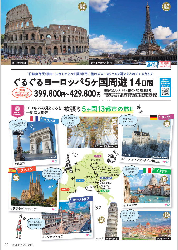 春休みのヨーロッパツアーは11月末までの予約がお得!お早めにお申込みください。