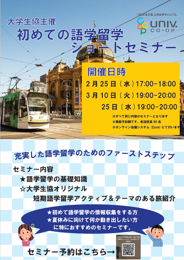 大学の春休み、夏休みに合わせてコースを設定!休学しなくても留学できます。