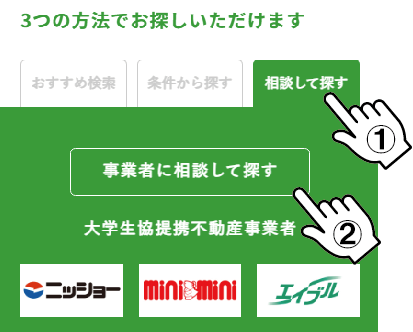 - 入寮選考結果が出るまでに、選考に入れなかったときに備えて、一人暮らし応援サイトから目星を付けておきましょう。