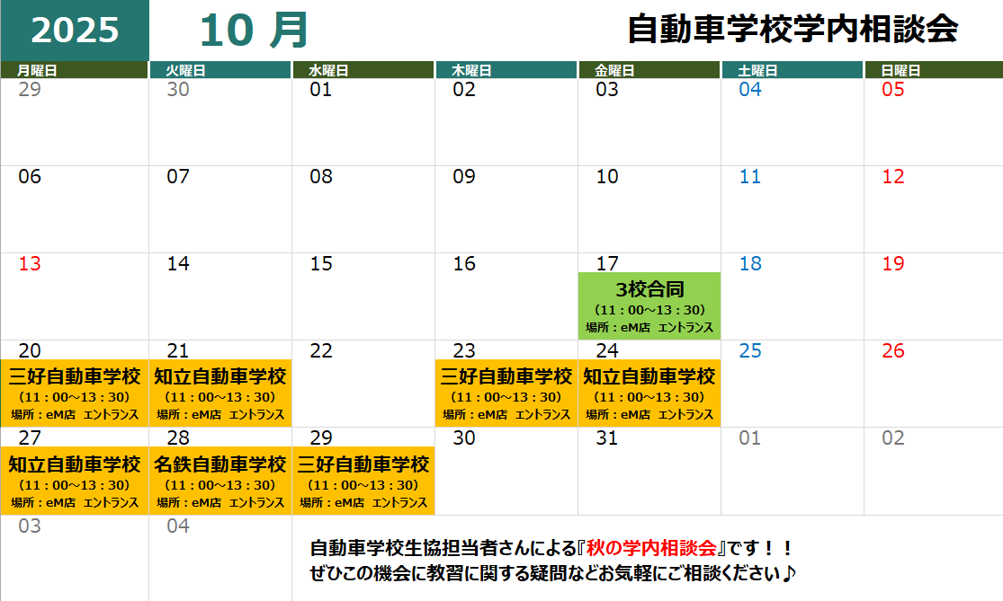 - 「知立自動車学校」「三好自動車学校」「名鉄自動車学校」による3校限定