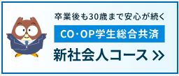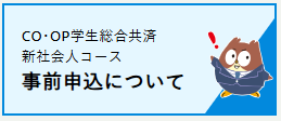 CO・OP学生総合共済「新社会人コース」は在学中に学生総合共済に加入されていただ方だけが、卒業後も加入できるコースです。学生総合共済申込と同時に、ぜひ「事前申込」をおすすめします。