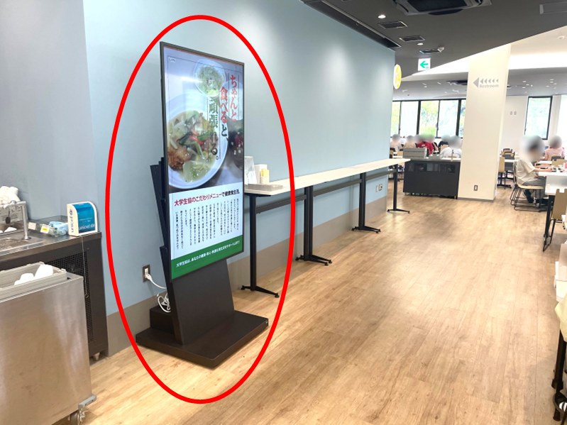 食堂の出入口に配置されているため、食堂を利用する多くの学生の目に留まります!