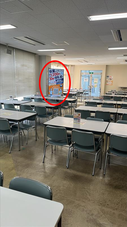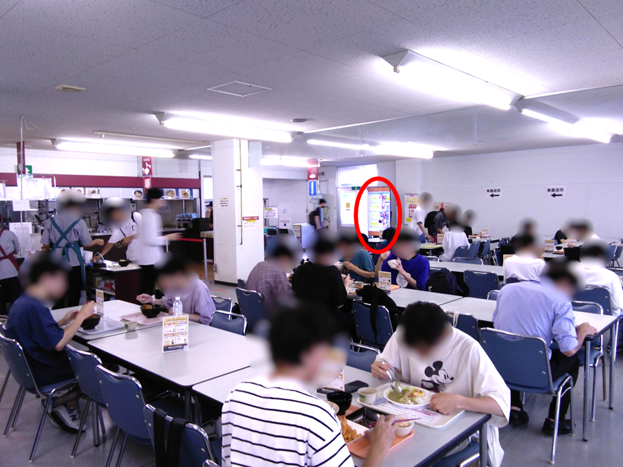 食堂の出入り口付近に設置してあるため、利用する多くの学生の目に留まります!