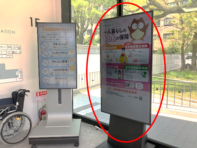 食堂の入り口に設置されており、利用する多くの学生の目に留まります!