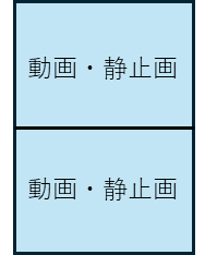 ●半々再生の場合 →上下半分ずつ動画もしくは静止画の放映が可能(動画と静止画の組み合わせも可)
