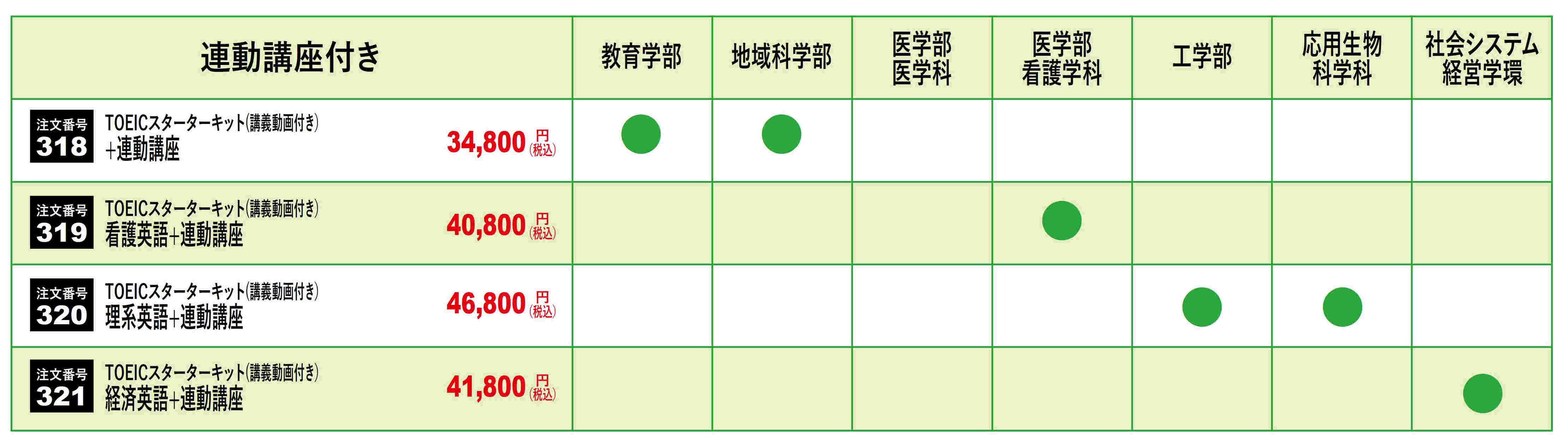 大学の英語学習の目的は「使える英語」を身に付けることです。この「TOEICスターターキット」+「TOEIC学習講座」を活かして自学自習の習慣を身に付けましょう!