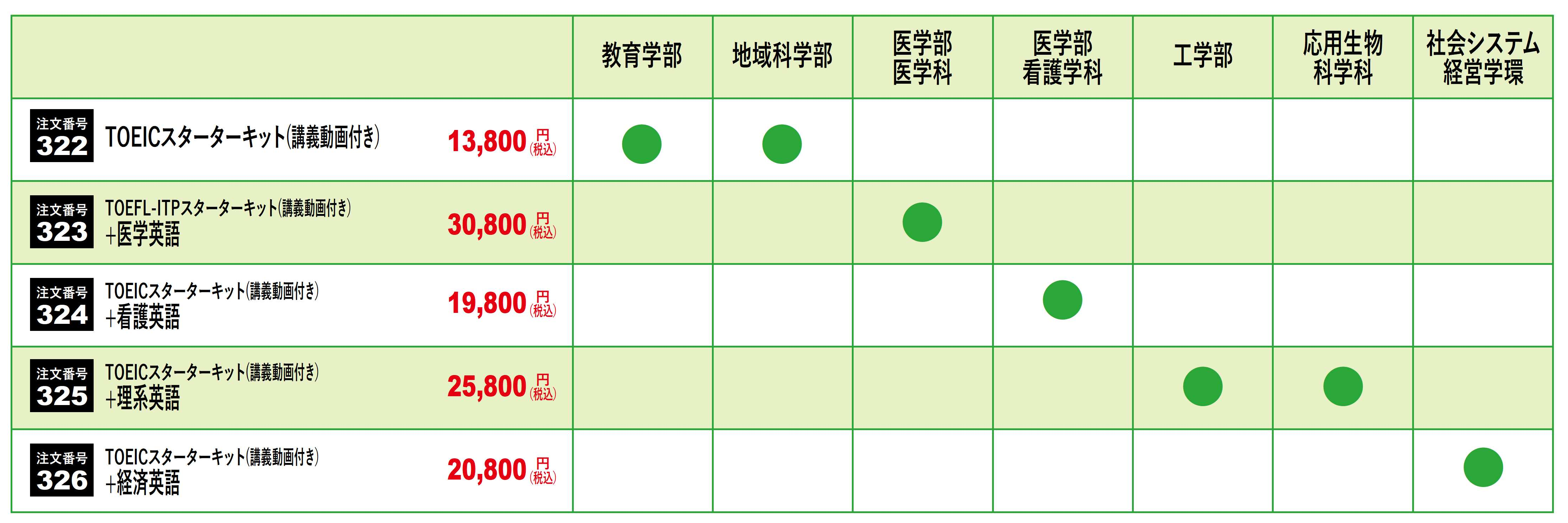 TOEICスターターキッドは学部に合わせたテキスト(内容)をご用意しています。