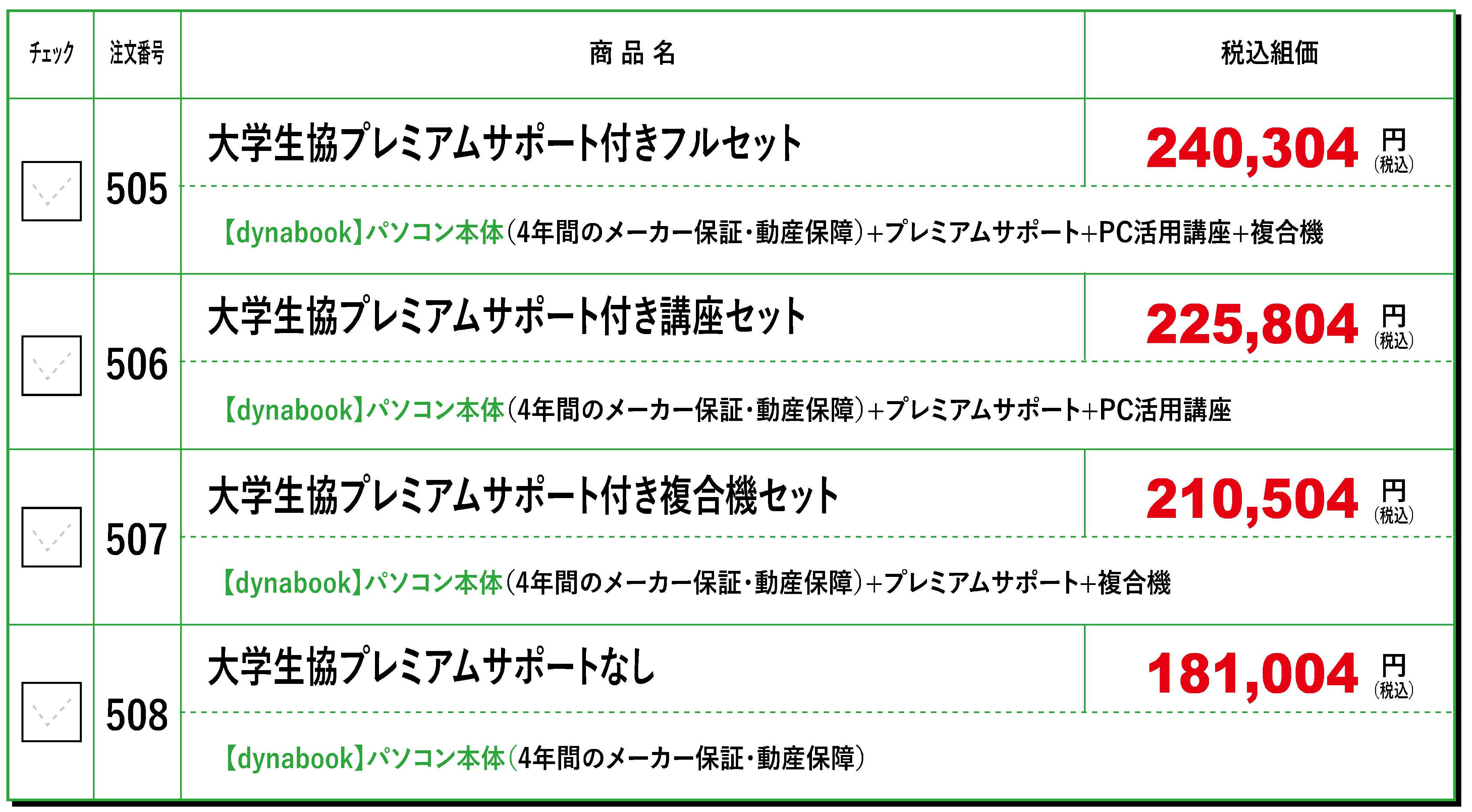パソコンを活用した大学生活での学びをサポートするために4年間のメーカー保証+4年間の動産保証をセットにしています。