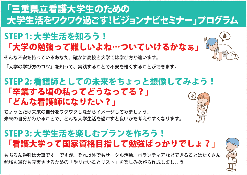 「三重県立看護大学生のための大学生活をワクワク過ごす!ビジョンナビセミナー」申込方法