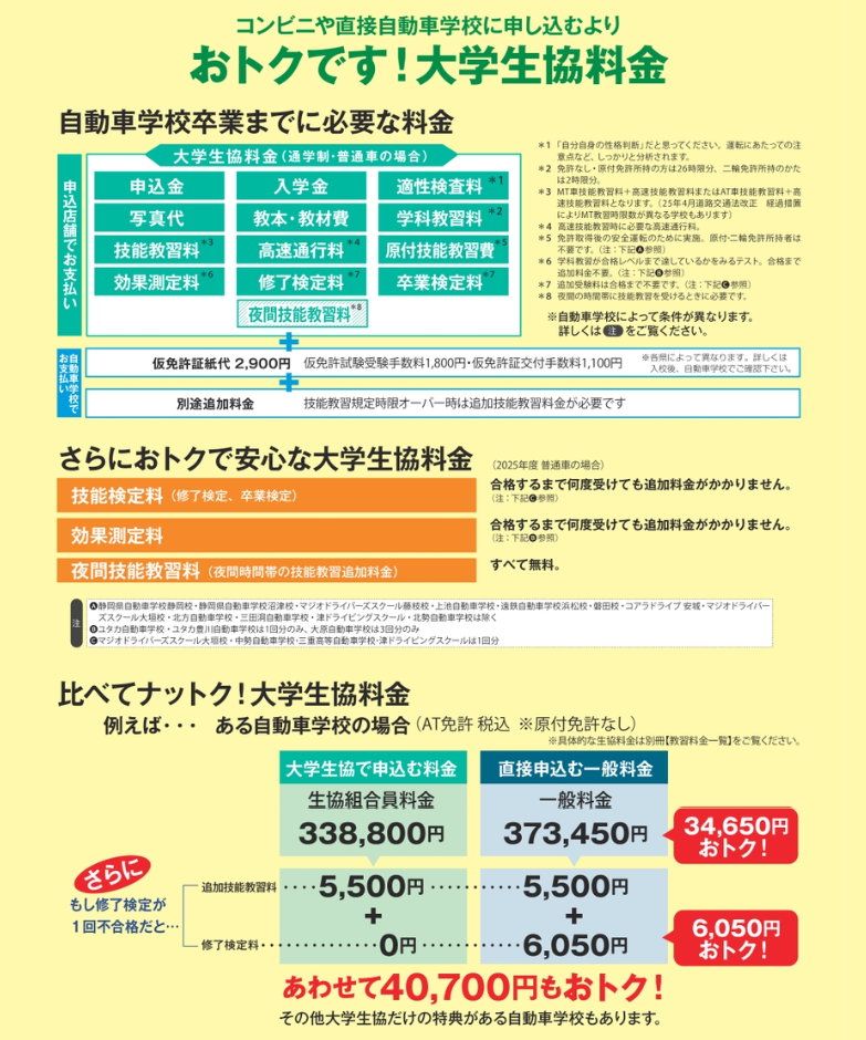 ※大学生協での自動車学校の申し込みは、生協に加入している必要があります。