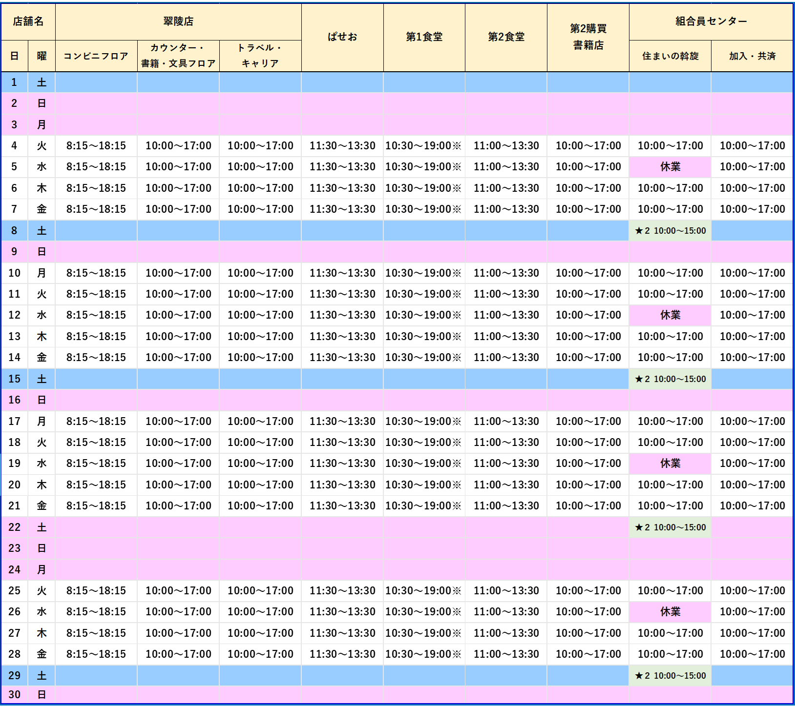 ★2 住まいの斡旋は11月より毎週土曜日臨時営業いたします。事前予約優先となります。学生証発行業務など一部業務は休止いたします。詳しくはお問い合わせください。