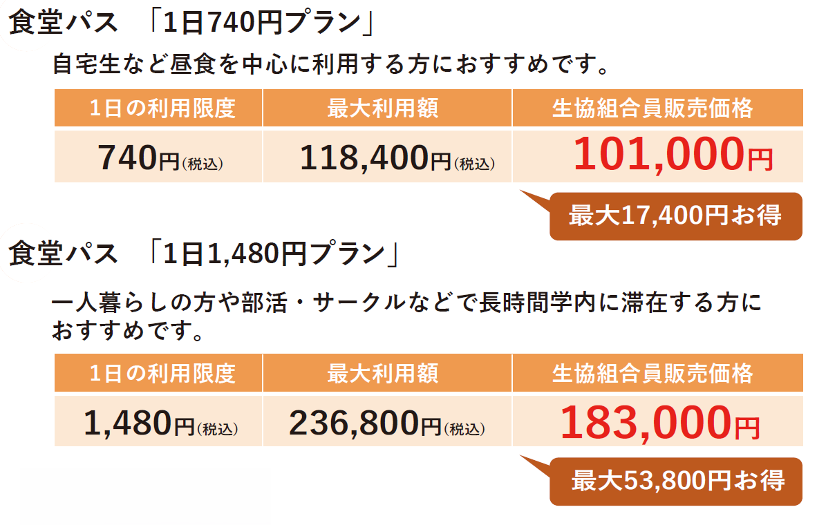 そんな時は、学食で使える「食堂パス」をどうぞ