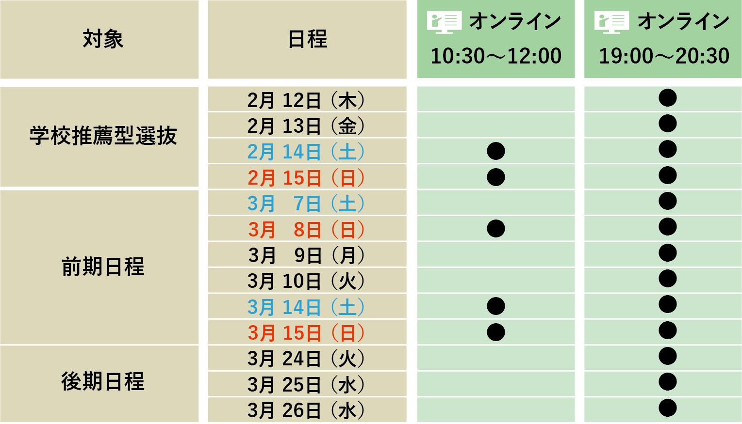 (教材展示説明会・大学生活相談)営業日