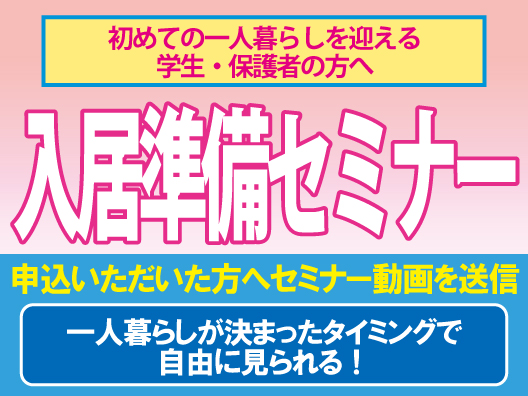 数は多くはありませんが、学生のみが暮らす学生専用物件もあります。生協では提携不動産各社やUniLife・NASICの学生専用マンションをご案内しています。.jpg)