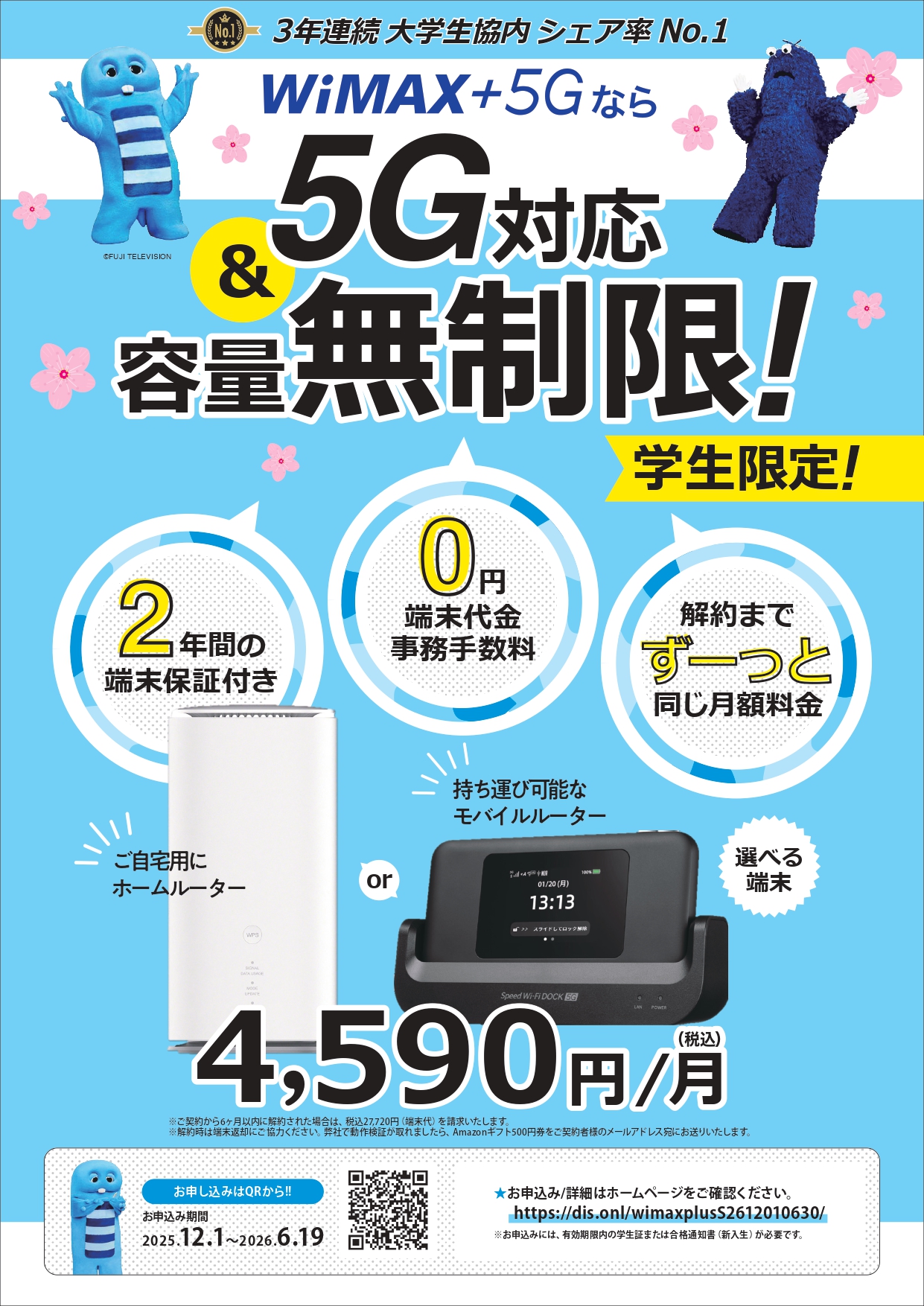 - 大学生協では国内最大級のIT専門商社ダイワボウ情報システムと提携して、WiMAXルータの斡旋をしています。