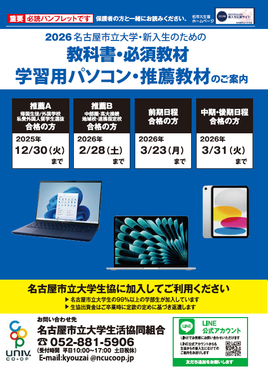 TEL:052-881-5904 Mail:kyouzai@ncucoop.jp問い合わせフォーム