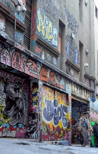 メルボルンはアートの街として有名で、ストリートアートを見に行きました。毎日塗り替えられていくため、同じ絵は見ることができないそうです。色遣いが鮮やかで迫力のある絵がたくさんありました。写真のようにポケモンを見つけて少しうれしい気持ちになりました。ほかにも、街中で寿司やサンリオのキャラクターなど日本のものを見つけたり、韓国、中国のお店もあったり、多文化が共生していることを感じました。