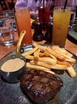 夕食にオージービーフを食べに行きました。SNSで見つけたお店で予約しておくといいと見たので予約していきました。日程の中で一番高級なお店だったことや見慣れないメニューのためとても緊張しましたが、店員さんがとても親切で私たちが理解できるまでわかりやすく話してくれて、無事に注文することができました。お肉はとても柔らかく美味しかったです。