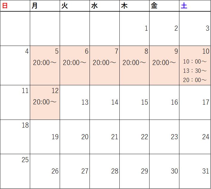 1月の日程